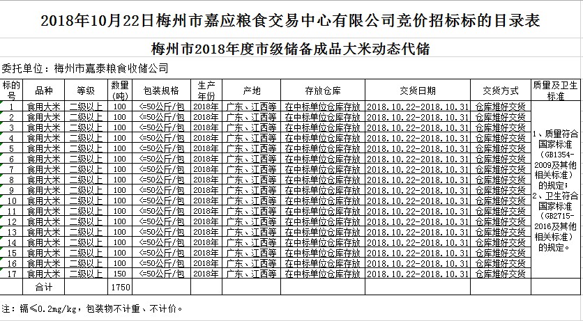梅州市2018年度市級儲備成品糧油動態(tài)代儲公開招標(biāo)公告