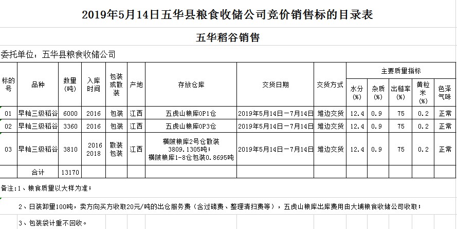 受客戶委托,梅州市嘉應(yīng)糧食交易中心有限公司定于2019年5月14日(星期二)舉辦糧食競價交易會,五華縣糧食收儲公司擬銷售2016年早秈稻13169.1305噸,2018年早秈稻0.8695噸。