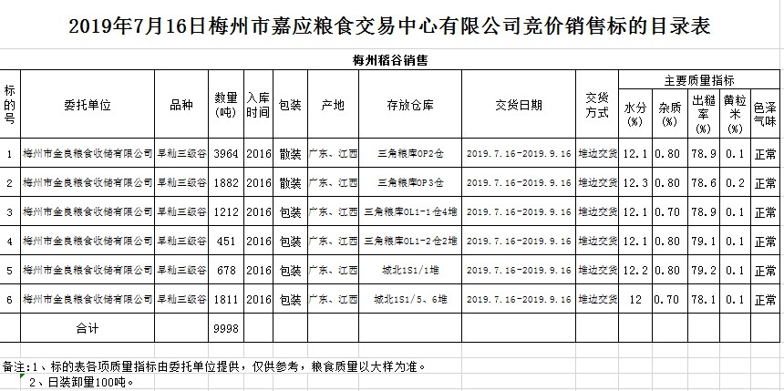交易時間和地點(diǎn):2019年7月16日(星期二)上午10時20分。廣東省梅州市彬芳大道南161號梅州市糧食交易中心3樓。