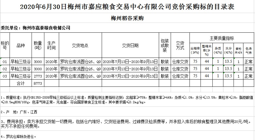 交易時(shí)間和地點(diǎn):2020年6月30日(星期二)上午10時(shí)15分。廣東省梅州市彬芳大道南161號(hào)梅州市糧食交易中心3樓。